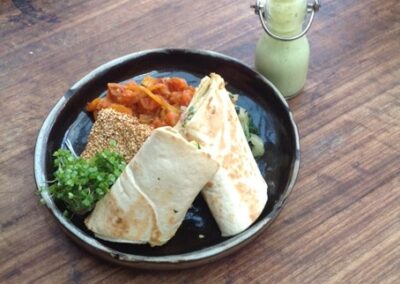 Op de middag kunnen jullie genieten van een heerlijke, met liefdevolle aandacht bereide bio-vegetarische maaltijd van Joanna.