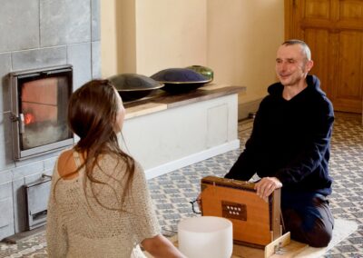 Op de middag kunnen jullie genieten van een heerlijke, met liefdevolle aandacht bereide bio-vegetarische maaltijd van Joanna. Daarna kunnen jullie genieten van een zalige voetreflexologie met live-klankbad, gegeven door ons beiden.